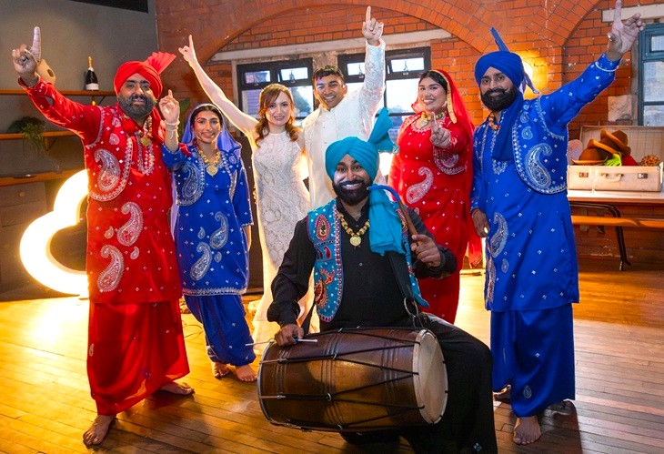 These professional dancers are south east based, performances are based on a mixed group of male and females. Their performances are for approxiamley 15 minutes to playback music medley of songs, followed by crowd interaction or workshops. The dhol player and singer are involved during crowd interaction and workshops. This could mean inviting the bride and groom on the dance floor followed by relatives and friends singing traditional wedding songs based on them. If its a corporate event they can offer a workshop involving all the guests by teaching them a few steps.